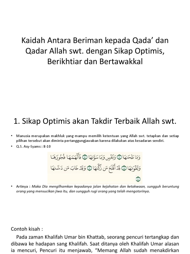 Pengertian Qada Qadar dan Takdir. Ini dapat terjadi karena mengimani qada dan qadar berarti memahami bahwa apa pun yang terjadi. BAB II PEMBAHASAN BERIMAN KEPADA QADA DAN QADAR A.